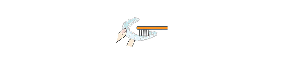 リテーナーは食事の後に、ぬるま湯(手で触って熱くない程度)で優しく洗い、傷つけないために柔らかい歯ブラシを使用して汚れを取り除きます。熱湯の使用はリテーナーを変形、破損させてしまう可能性があるため、絶対に使用しないようにしましょう。